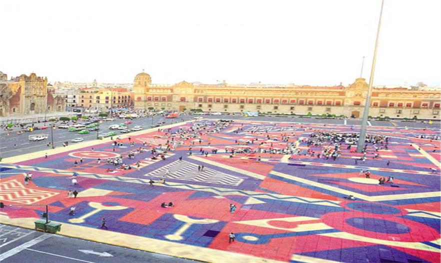 噴漆要每3年要重描一次,可以改變左卡洛廣場的面貌、顏色和特色,使它成為墨西哥市不斷更新和變化的地標建筑。與傳統(tǒng)城市結構相呼應的空曠空間的狀況得到了改善,現(xiàn)在增加了各種各樣的顏色和軸線,為居民所熟知,成為該城市的地標建筑。