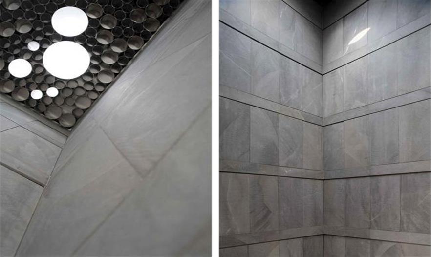建筑師:“教堂從內(nèi)到外均勻的石材表面可以減輕這種壓抑感,屋頂由INOX管子拼合,圓形的空洞不僅流入光線、空氣、雨水,當(dāng)您抬頭時(shí),還能看見天空。”