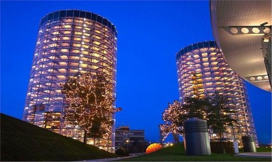 四十二米高的透明停車塔樓,可容納四百輛汽車,四十秒一次的自動(dòng)升降裝置可取出塔中任何位置的汽車。停車塔樓與游客中心直接相連,游客們可以站在樓頂透過玻璃車廂,看到整座停車塔的車子出庫(kù)入庫(kù)的過程。