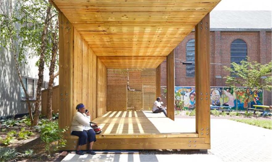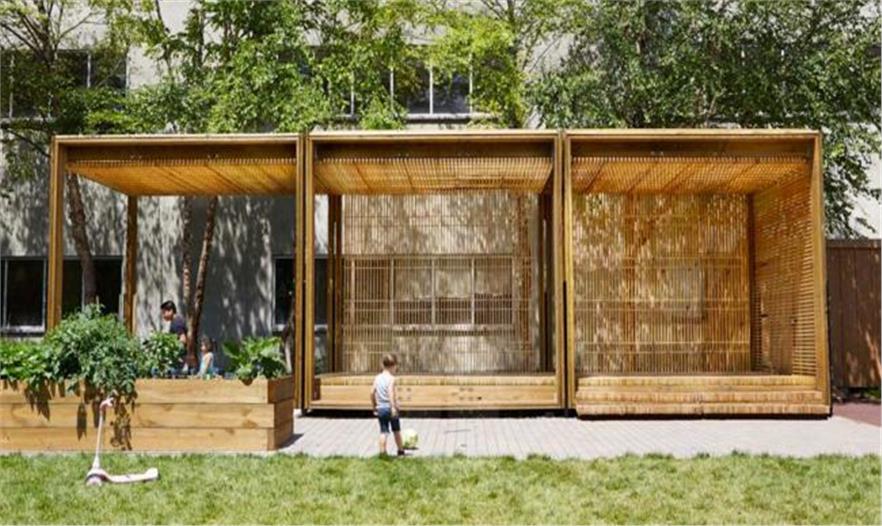 “小屋子”或叫”小房子”是NYRP(紐約整修工程)和城市空氣基金會(huì)組織的工程的一部分。他們委托TEN建筑事務(wù)所來設(shè)計(jì)一種適應(yīng)性很強(qiáng)的建筑,能作為一系列復(fù)雜活動(dòng)的平臺(tái)來使用,比如食物準(zhǔn)備站,表演用的舞臺(tái),或僅僅作為一個(gè)歇息和乘涼的棚子。最后這種模塊化的木建筑應(yīng)運(yùn)而生,與戶外公園的環(huán)境相映襯。