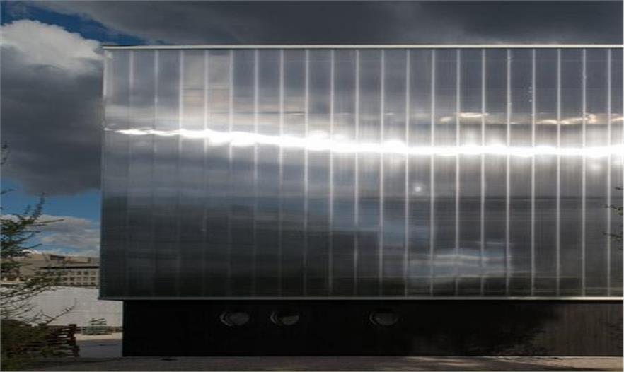 半透明的材料從地面上方2米開始向上延伸,因此底樓可以自由出入。暗鑲板包覆了建筑下部。