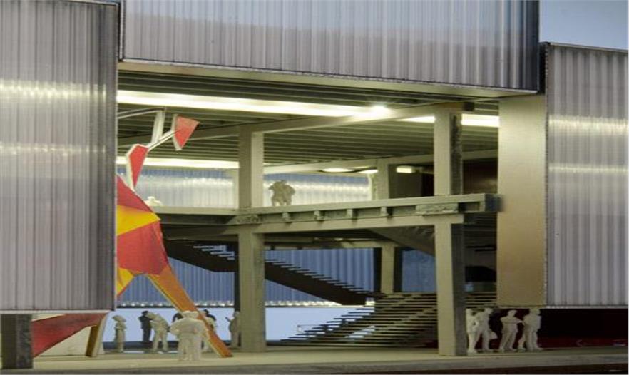 畫廊有兩個11米寬的垂直推拉門,當它們打開時,有七層高。