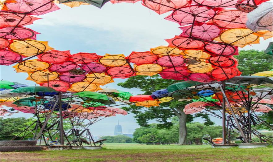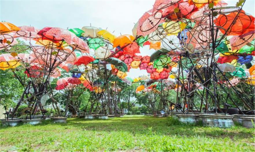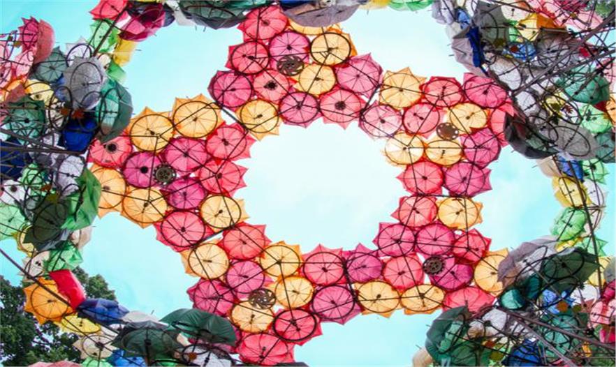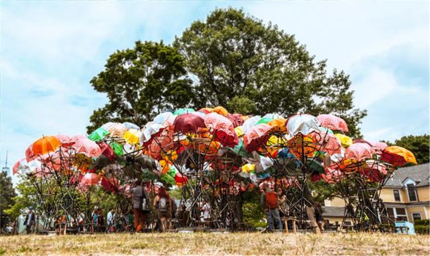 Izaskun Chinchilla建筑事務所設計的自然發(fā)展亭(Organic Growth Pavilion)是受自然的啟發(fā)創(chuàng)造的,特點是由回收的材料制成,例如破舊的雨傘、舊凳子和損壞的自行車車輪。這個方案喚起了人們對垃圾填埋場中大量的廢棄物的認知,還提供了亭子用完之后的回收方案,例如室內(nèi)枝形吊燈和戶外空間季節(jié)性的保護傘。