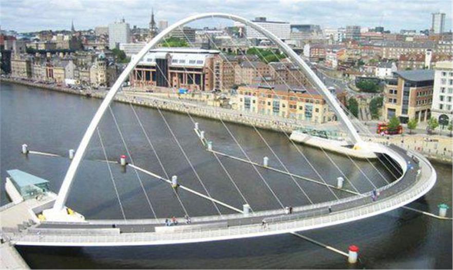 這座專為行人和騎自行車(chē)的人們通行的傾斜橋值得贊揚(yáng),是世界上第一座也是目前唯一一座傾斜橋。該橋橫跨泰恩河,連接著南岸的蓋茨黑德和北岸的紐卡斯?fàn)?。這座弧形橋可以通過(guò)壓力揚(yáng)吸機(jī)來(lái)進(jìn)行旋轉(zhuǎn)升起,以便讓船只通過(guò)。