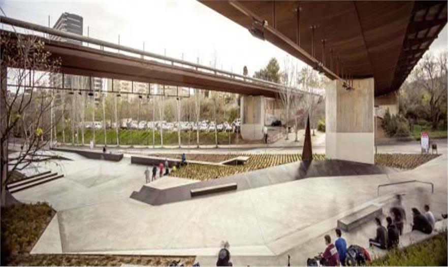 該規(guī)劃方案將這個新滑板公園展現(xiàn)成一個滑板廣場。這個項目利用了該區(qū)域的限制條件,把斜坡的坡度和容積用作滑板元素。