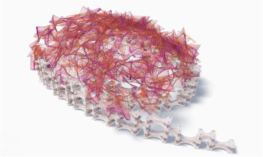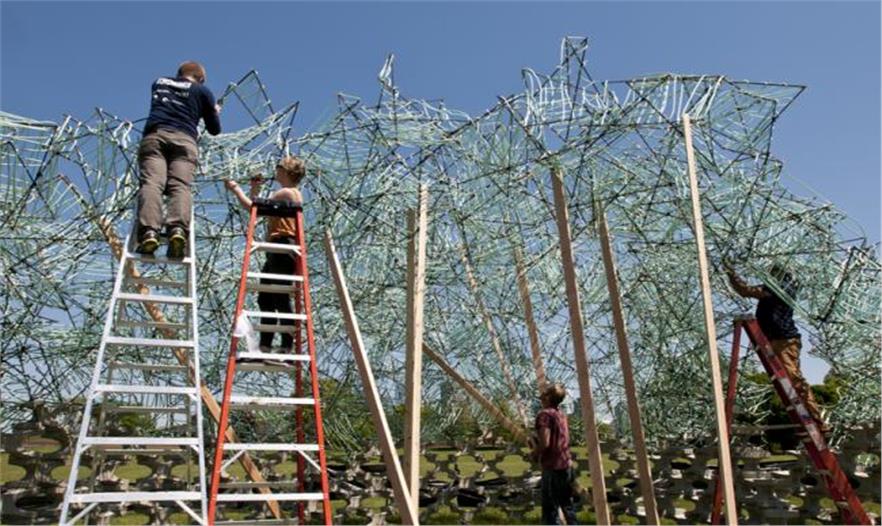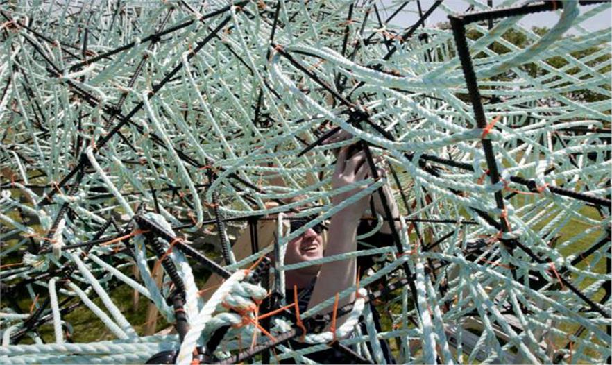 通過塑料繩連接,從而構(gòu)成了一個類似穹頂?shù)木W(wǎng)狀結(jié)構(gòu)