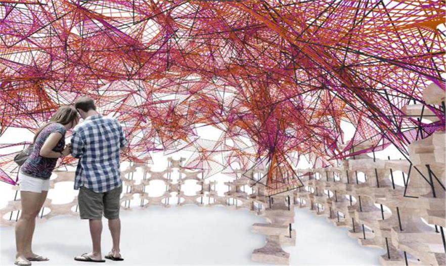 亭子將用作夏末島上這次展出的社交和信息服務(wù)空間,港口學(xué)校將在他們的此次活動后重復(fù)使用該建筑,以便2030年前在紐約的水系中引入十億牡蠣。構(gòu)成編織頂棚的材料包括鋼筋、尼龍繩和軟管夾,這些材料將在港口修復(fù)工作中繼續(xù)使用。“我們將與BOP繼續(xù)合作促進(jìn)這方面的努力。我們對島上材料進(jìn)行重復(fù)利用,從而不需要第二次運(yùn)輸使用材料。”BanG工作室團(tuán)隊介紹道。