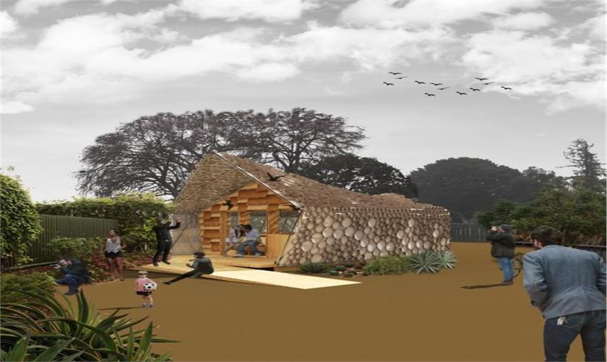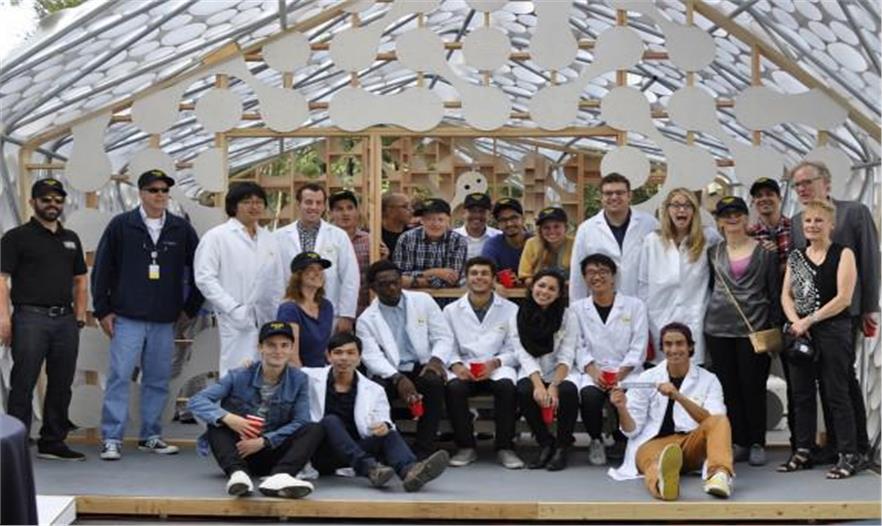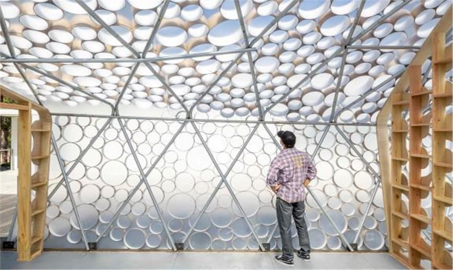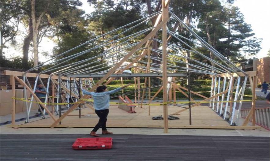 上周他們公布了結(jié)果,在杉磯加州大學(xué)藝術(shù)中心(Broad Art Center)外面建造了一個(gè)非常漂亮的、350平方英尺的樣板房。這個(gè)房屋是展館一樣的結(jié)構(gòu),由管架構(gòu)成,包裹在收縮塑料薄膜里,里面裝滿(mǎn)硬紙管。