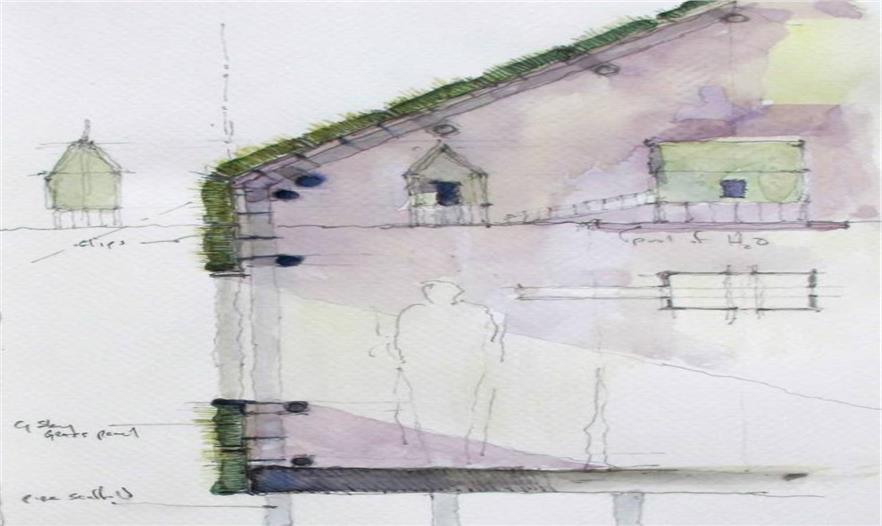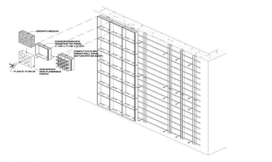 這個亭子可以放在公共廣場或是庭院當(dāng)中,將由管式腳手架和G-sky綠色墻板建造,這些有助于該結(jié)構(gòu)的運(yùn)輸和拆卸。種植當(dāng)?shù)刂脖慌嘤ㄔ煸摻ㄖ拇怪被▓@。