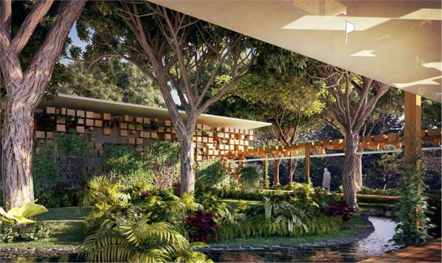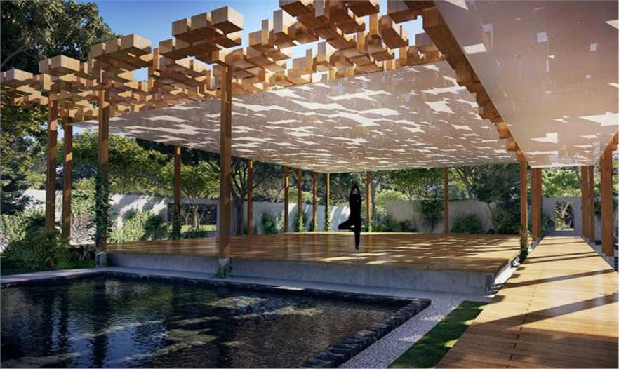 這些亭子由木制和織物屋頂連接起來,捕捉從樹葉溜進(jìn)來的陽光,斑駁點(diǎn)點(diǎn),這樣在人們做瑜伽和其他活動時,營造出運(yùn)動的氛圍。樹木之間散布著許多按摩室,增添了一抹景色。這里的水聲更加柔和和靜謐,與人們的心理狀態(tài)相符,還會增強(qiáng)按摩效果。