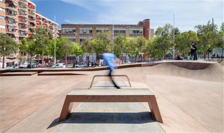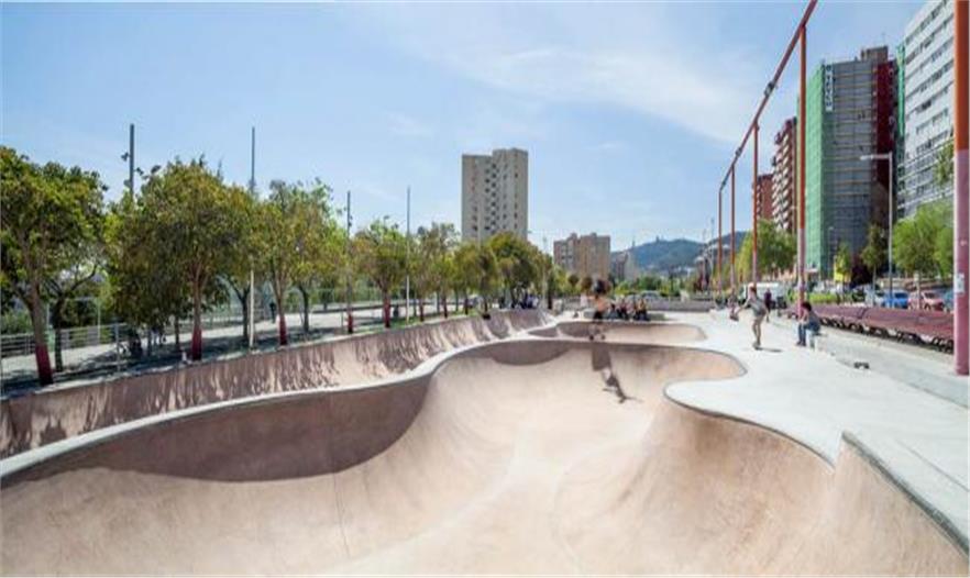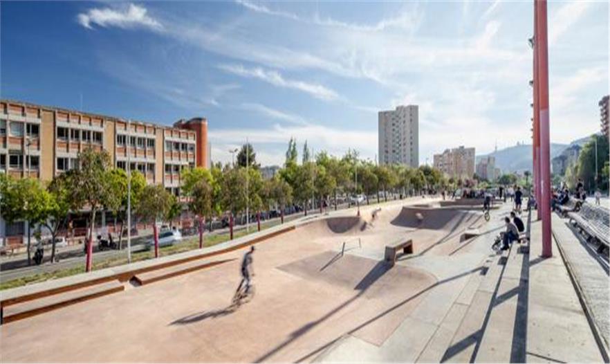 Nou Barris的這個新滑板公園建在隆達島特路 (Ronda de Dalt)的路面上,這條路是巴塞羅那最大的道路基礎設施之一。