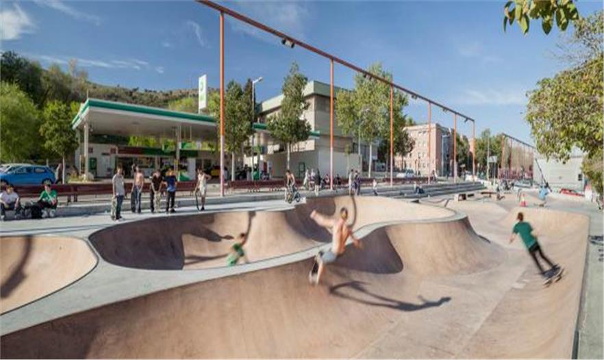 這個項目涉及一個舊滑板公園的重塑工作,過去只是進行了部分使用。這個滑板公園是通過居民參與程序與當?shù)厥褂谜呔o密合作的成果,根據(jù)他們的需求建造了這個滑板公園。