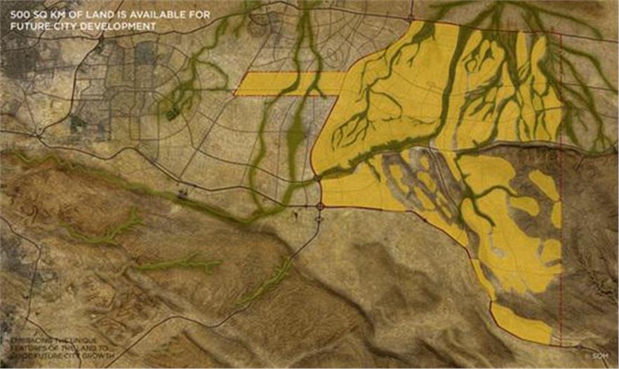 SOM建筑事務所發(fā)布的新的450億美元的新首都的設計方案,是一個面積達270平方英里的大都會,大約相當于新加坡的面積,由許多低層建筑圍繞著一批摩天樓。
