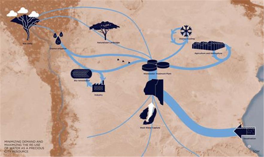 盡管埃及的水資源短缺和經(jīng)常停電,設計方案要求這里的沙漠景觀呈現(xiàn)為綠色,并且承諾建成世界上最大的城市公園網(wǎng)之一。