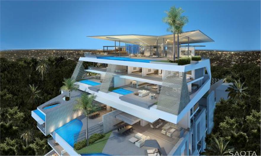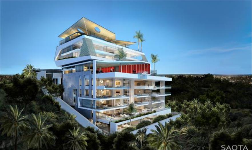 這座建筑包括低層的公寓、一個公共俱樂部以及兩層的閣樓公寓。其引人注目的頂樓公寓被概念化成一個開放、漂浮的亭閣。
