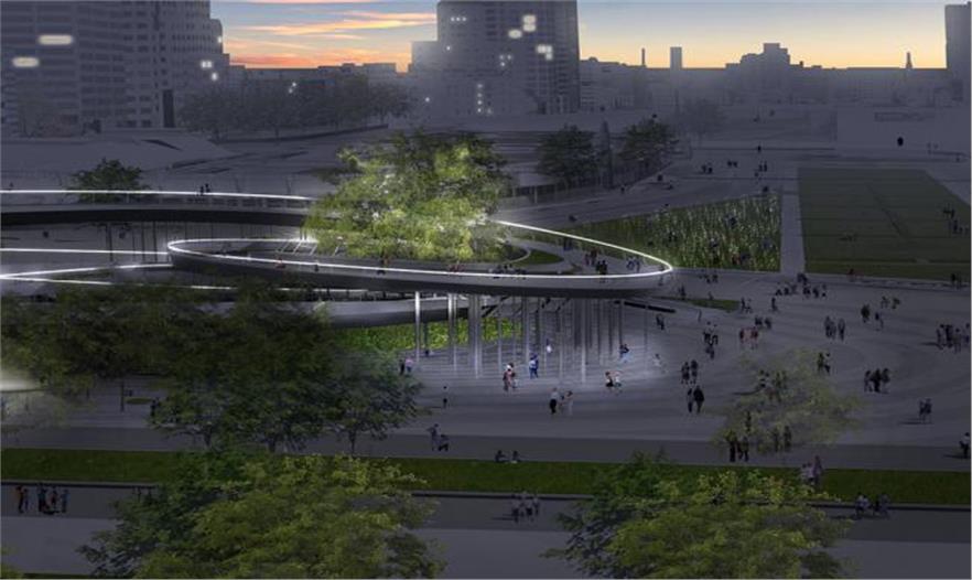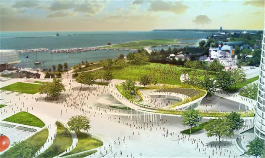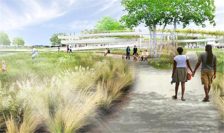 AECOM事務所稱最后的設計方案為“空中花園”,是4個方案中的一個,該城市正在對林肯紀念大道和東密歇根街上的這個濱湖公園方案進行審核。