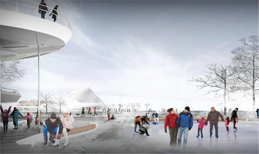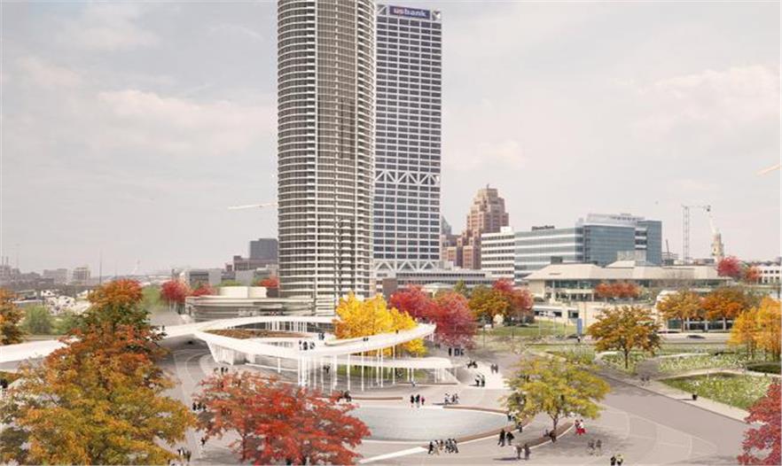 由AECOM事務所領導的團隊在訪問密爾瓦基郡歷史協會之后獲得了這個市區(qū)新濱湖廣場的設計靈感。