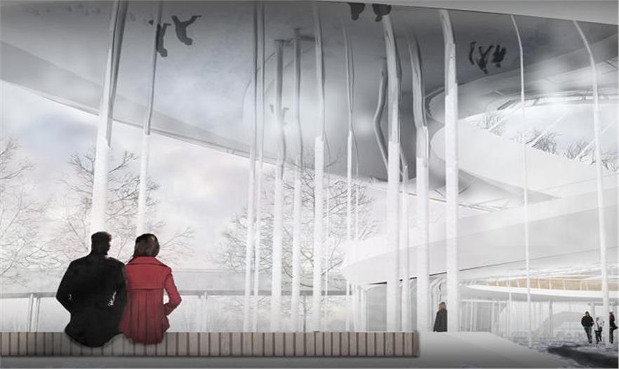 這個蜿蜒曲折的橋是由一系列的橋墩支撐,而AECOM公司想要把這些橋墩隱藏起來。這些橋墩零散分布著,就像一片小樹林。它們和這座橋的底部將覆蓋上反射性金屬,將橋下空間(將是廣場和聚會空間)轉變成一個“反射性森林”,可以舉辦活動和藝術展覽。