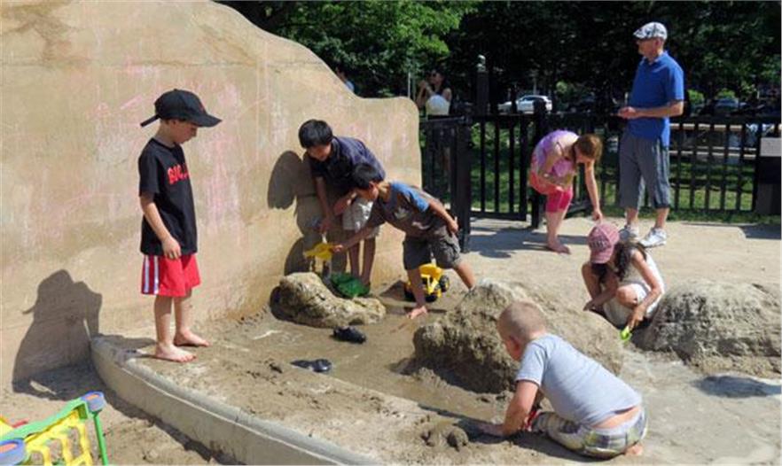 這個(gè)游樂(lè)場(chǎng)改造項(xiàng)目包括一個(gè)初級(jí)和高級(jí)的游樂(lè)空間。一些特色結(jié)構(gòu)(如攀爬墻、繩索橋和觀察臺(tái))都是為西貝柳斯廣場(chǎng)上的游樂(lè)場(chǎng)特制的。整個(gè)游樂(lè)場(chǎng)項(xiàng)目都是使用如沙、木、石這樣的天然材料。該空間周圍建有弧形的石頭墻,它為父母和孩子們創(chuàng)造了用于社會(huì)交流的小空間。