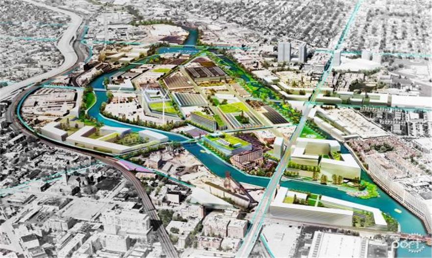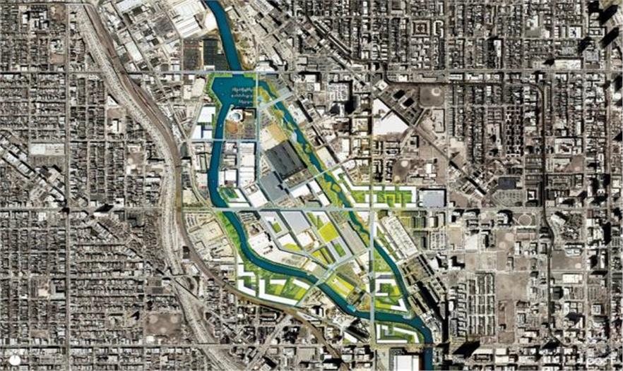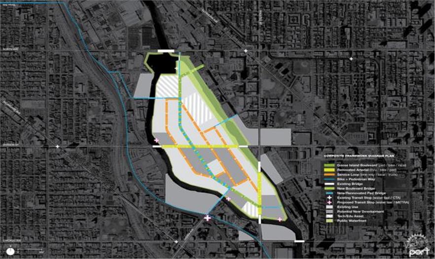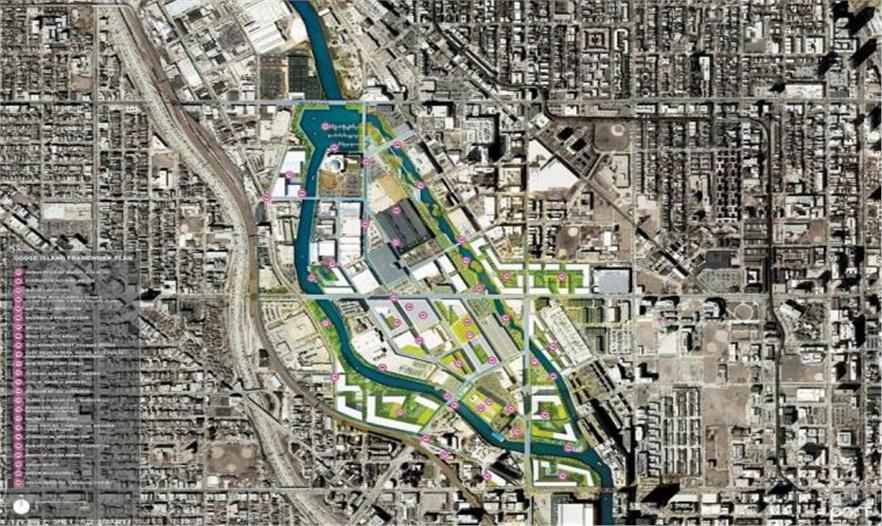 為了扭轉(zhuǎn)芝加哥鵝島這個(gè)小而獨(dú)特的地區(qū)的命運(yùn) ,房地產(chǎn)開發(fā)公司 R2公司和城市規(guī)劃組織PORT Urbanism 聯(lián)手設(shè)計(jì)了一個(gè)復(fù)活鵝島方案。這個(gè)人工島有著悠久的制造業(yè)歷史,但是缺乏許多其他芝加哥地區(qū)的收入流。所以開發(fā)團(tuán)隊(duì)希望2025年之前改善這種條件,使它發(fā)展成可持續(xù)的、高科技社區(qū),使其與芝加哥的城市化連接起來。