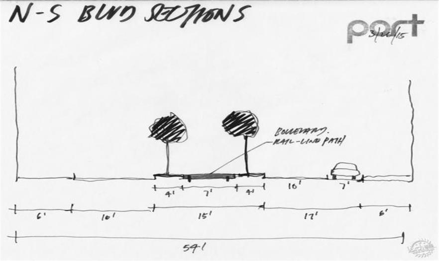 Boulevard Section Sketch/大道剖面示意圖。Image Courtesy of PORT