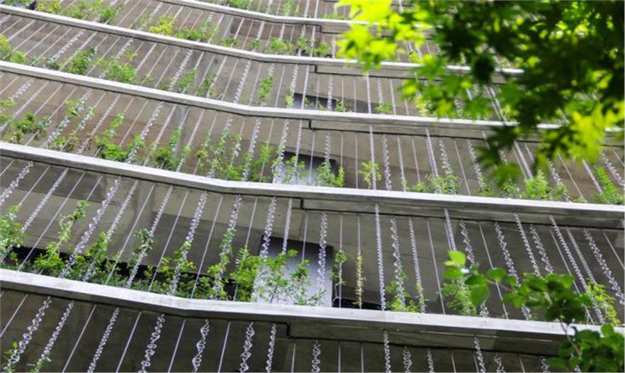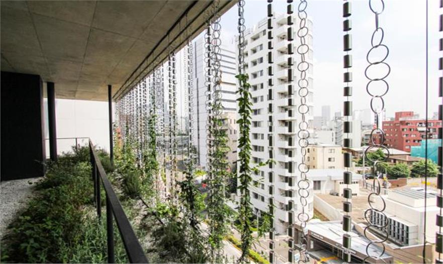 自此以后,變化萬千,但是仍然使用雨鏈,如今在合作的kyosai建筑(屬于日本消費者的合作聯(lián)盟 japanese consumers’ cooperative union)的外觀裝飾找到了歸屬。seo inc.公司和室內(nèi)設(shè)計師jun hashimoto合作,創(chuàng)造 “toh”——雨鏈模式,已經(jīng)安裝在整個外立面的前面和后面。建筑由tatsuya hatori和nikken sekkei公司設(shè)計。