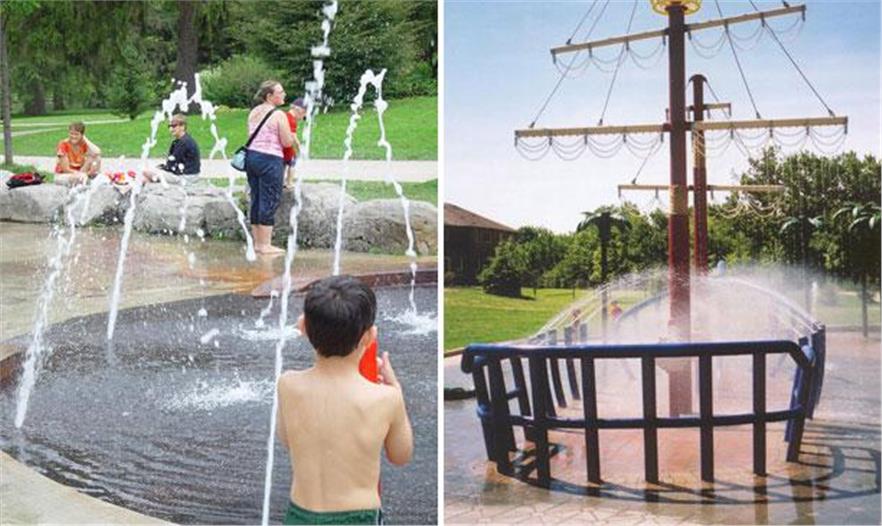 當(dāng)景觀設(shè)計(jì)師與水游樂(lè)設(shè)施生廠商合作設(shè)計(jì)時(shí),這些噴水池會(huì)展示出水游樂(lè)場(chǎng)特定設(shè)計(jì)的潛力。即使預(yù)算緊張,設(shè)計(jì)師也會(huì)規(guī)劃出適合這些細(xì)節(jié)和區(qū)域背景的獨(dú)特設(shè)計(jì)。盡管主要是夏季使用,但游樂(lè)場(chǎng)的雕塑特質(zhì)可使人們?nèi)暝诖擞瓮妗?/p>