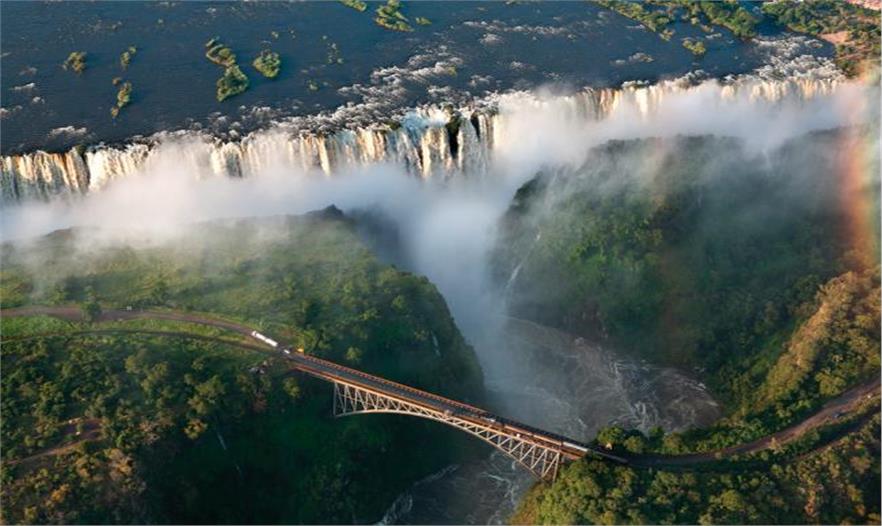維多利亞瀑布被稱為世界上最大的瀑布,位于贊比亞和津巴布韋的接壤處,稱為“霹靂之霧”。