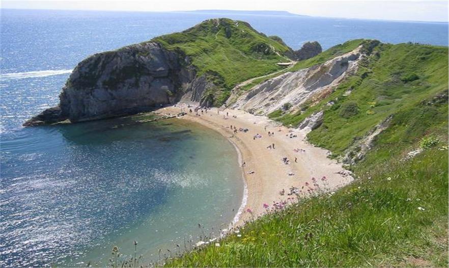 Man of War Bay包圍著英格蘭南部多賽特海岸的Man O’War Cove,在杜德爾門向西的海岬與向東的Man O War Head之間。在階梯的頂端能看到杜德爾門的頂端和拱門。