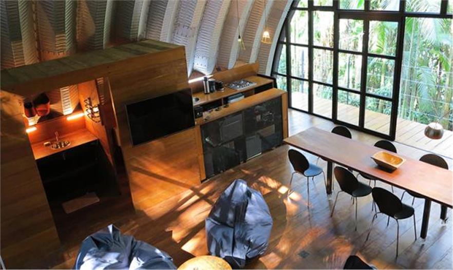 這個(gè)由金屬結(jié)構(gòu)打造的住所被認(rèn)為是巴西當(dāng)代興谷河區(qū)域asurini和médio類型在現(xiàn)代的詮釋。單個(gè)外殼——由碳素鋼、鋁和鋅制成的的復(fù)合物——組成屋頂和墻壁。整個(gè)結(jié)構(gòu)在一個(gè)星期內(nèi)在現(xiàn)場(chǎng)快速建成,并且可以很容易地在不同的位置拆卸和重建。