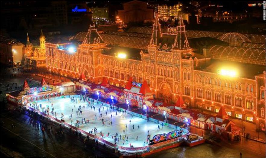 冬季,紅場的四分之一會成為“圣誕節(jié)裝扮”的溜冰場。橢圓形的溜冰場位于克里姆林宮、圣瓦西里大教堂和國家歷史博物館下面,滑冰者可以盡情的享受滑冰的樂趣。
