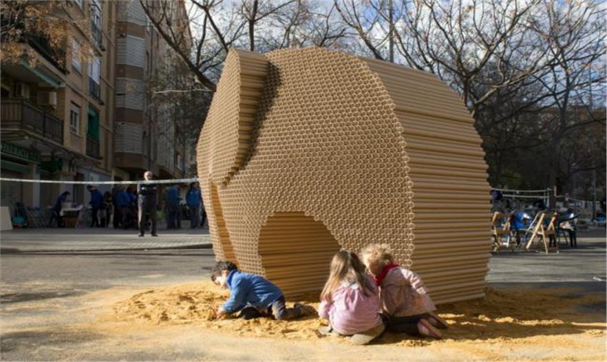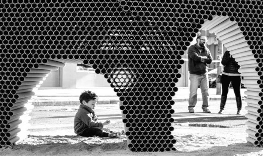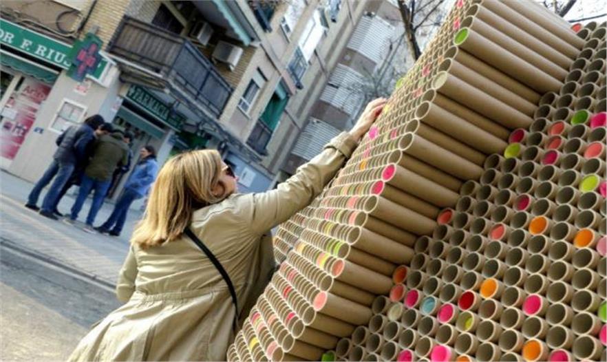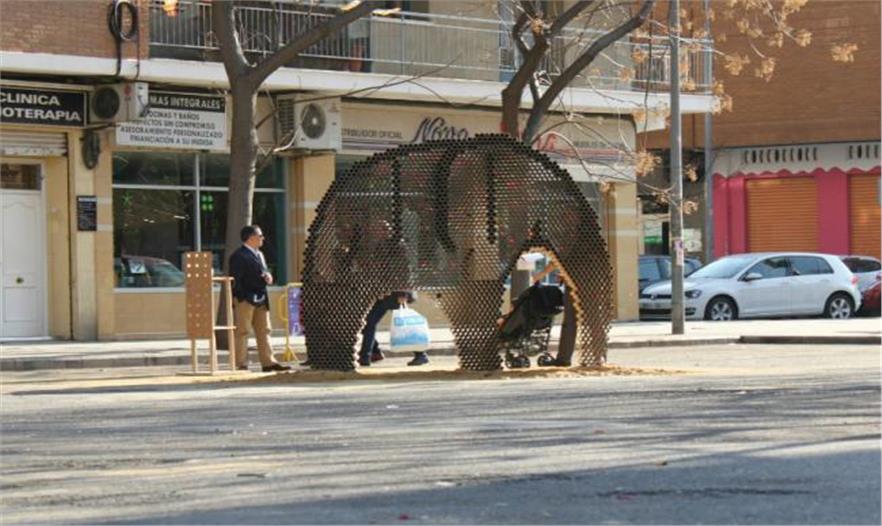 西班牙工作室Nituniyo——不代表你我任何一人——受卡斯鐵爾法維布法雅節(jié)主辦方委托為今年的盛事新創(chuàng)了一個作品。在火祭節(jié)期間,為避免蜂擁而至的游客可能帶來的破壞,主要的公共場所如紀念牌等地基本上都用籬笆圍了起來,但這也導致游客與周圍環(huán)境處于一種不太和諧的狀態(tài)中。