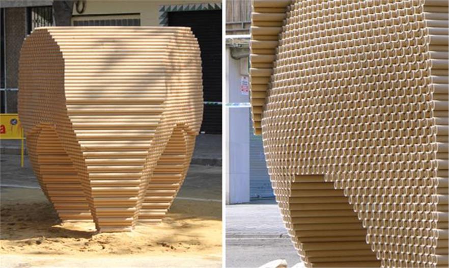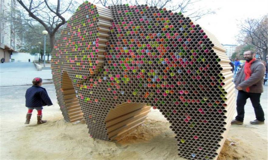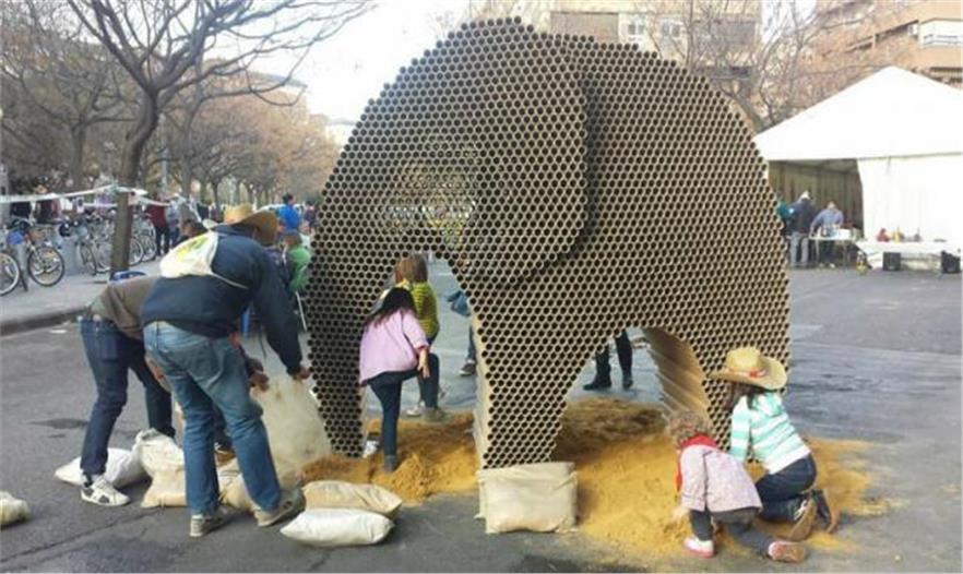 人們?yōu)榛鸺拦?jié)創(chuàng)作的藝術(shù)品原材料一般都是聚苯乙烯,Nituniyo不同,他們利用的是中空的紙質(zhì)管道。這種可回收材料比原來那些高分子聚合物更適于燃燒,還可以根據(jù)設(shè)計添加其它東西。游客可以在主辦方提供彩色紙張上寫上他們的夢想和希望,然后將紙張塞進管道里。管道里塞滿紙張后,半透明的大象便成為了一道靚麗的風景線。和其他所有作品一樣,‘Somnis de Pes’ 在3月19日晚被付之一炬。