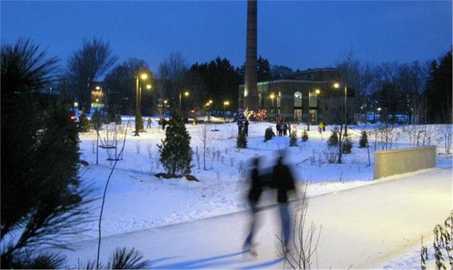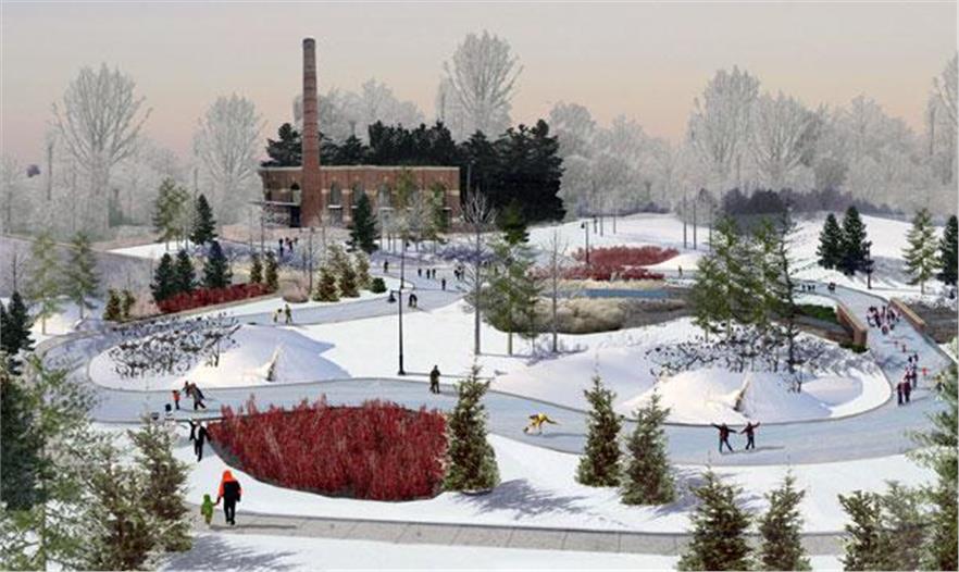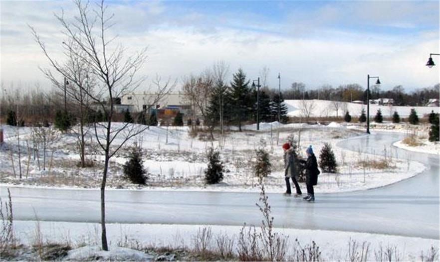 PMA景觀設(shè)計事務(wù)所建造了多倫多第一條滑冰道,于2010年12月11日開放。這條人工冰凍的滑冰道全長250米、呈8字型,位于多倫多西端的史密斯上校公園里。這個濱河公園因其野生生物和植物棲息地的多樣性和質(zhì)量而聞名,被認(rèn)為是多倫多最適合觀鳥的區(qū)域之一。該滑冰道的設(shè)計方案反映了已存條件,保護(hù)樹木的同時提供種有本土植物和幼苗的新棲息地。