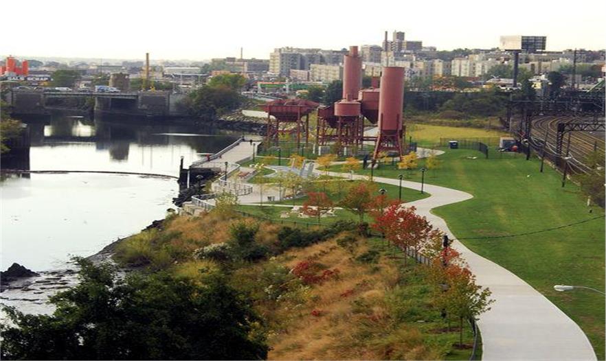 混凝土廠公園以前是個混凝土混合攪拌廠,位于西海岸布朗士河的南邊。公園四周是一些大型橋,被美國鐵路線路從中切斷與大陸分離。社區(qū)在改造區(qū)的中心區(qū)域,附有象棋桌、美麗的海濱區(qū)、游艇以及繁忙的自行車道——是休閑周末的必備區(qū)。