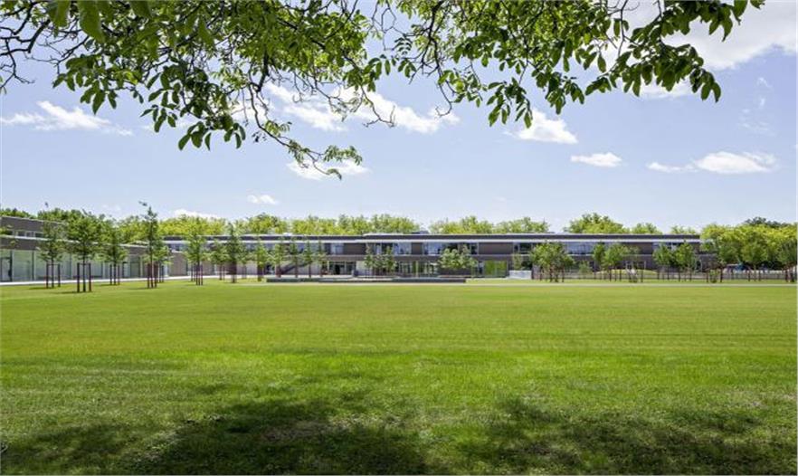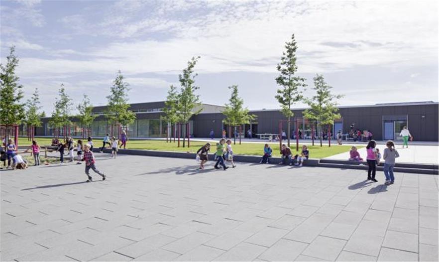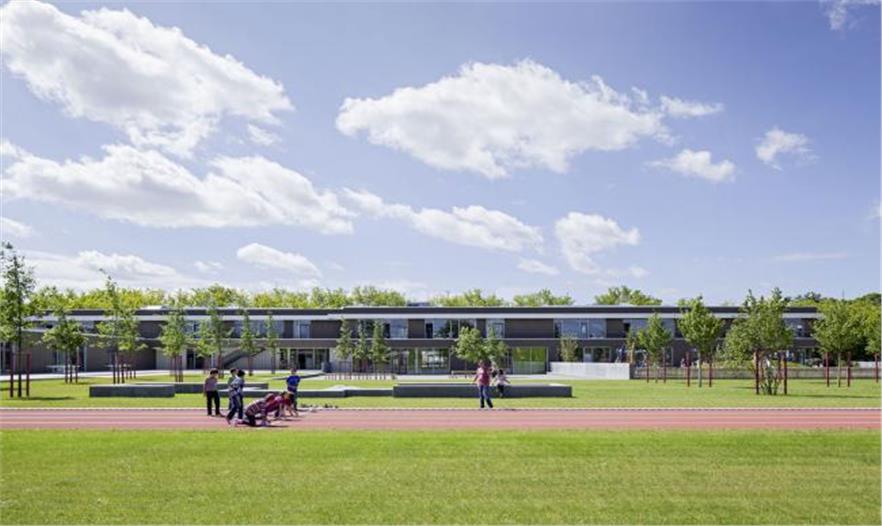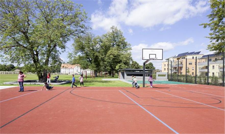 一排排新種植的樹木填補了珍貴老樹的數(shù)量,在該學(xué)校的戶外設(shè)施周圍構(gòu)成了一個框架,用流動般的鵝耳櫪樹籬和樹籬劃分個別區(qū)塊。平坦鋪設(shè)的混凝土、格子和草坪結(jié)構(gòu)構(gòu)成了地面、賦予它們了功能。座位階梯、樓梯和坡道區(qū)分部分綠樹環(huán)繞空間的不同層次,而最深的區(qū)域與嵌壁式的會議大廳相連。子空間遵循地塊劃分的原則設(shè)計,就如在該設(shè)施西北部的老果園里看到的一樣。這個地塊將成為一個教育性的學(xué)?;▓@。南部Grasinger 廣場的主入口區(qū)域向該公園開放。