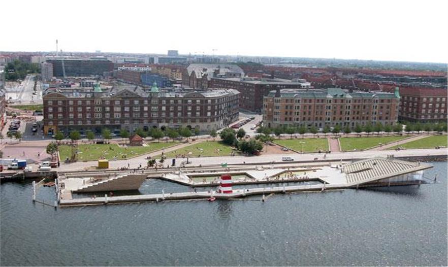 哥本哈根Brygge島的海港浴場(chǎng)對(duì)哥本哈根居民和游客來說是個(gè)地標(biāo)項(xiàng)目。2002年開幕之后,這個(gè)浴場(chǎng)的成功促使增加一些設(shè)施,以提供溫泉浴場(chǎng)的基礎(chǔ)設(shè)施。BIG建筑事務(wù)所負(fù)責(zé)溫泉浴場(chǎng)的設(shè)計(jì)方案。