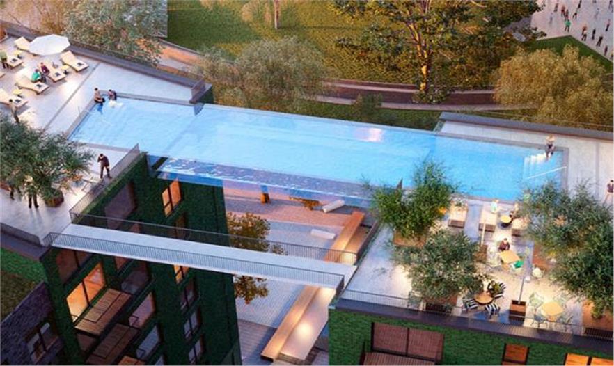 “空中游泳池”于這周揭開面紗,是Ballymore公司開發(fā)的Embassy Gardens住宅區(qū)的一部分。