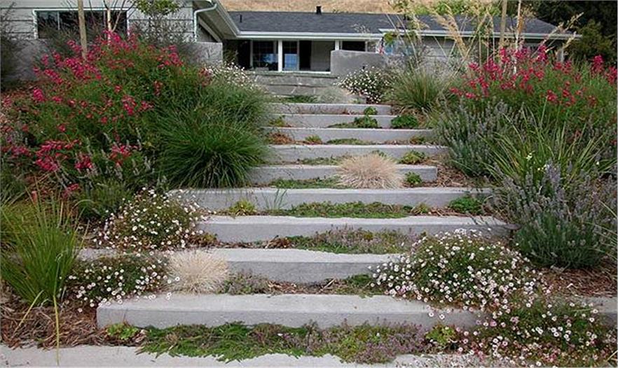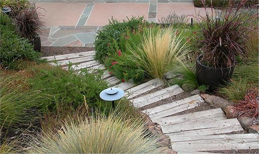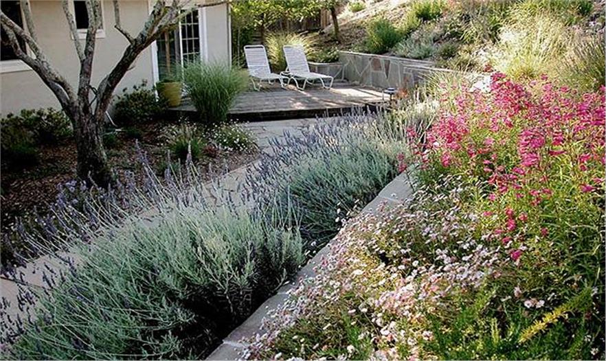 Huettl景觀設(shè)計(jì)事務(wù)所移除了該花園里的柵欄、茂密的刺柏以及不適宜的冷杉樹,加強(qiáng)了與鄰近開放空間之間的聯(lián)系。新庭院、甲板和擋土墻代替了老舊的木板和混凝土,讓住戶能夠在天然起伏的地形上用餐和開展娛樂活動(dòng)。本土和地中海草本植物和宿根植物的搭配與上面的山地連接起來。