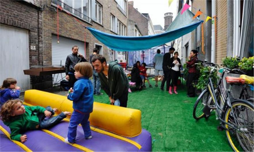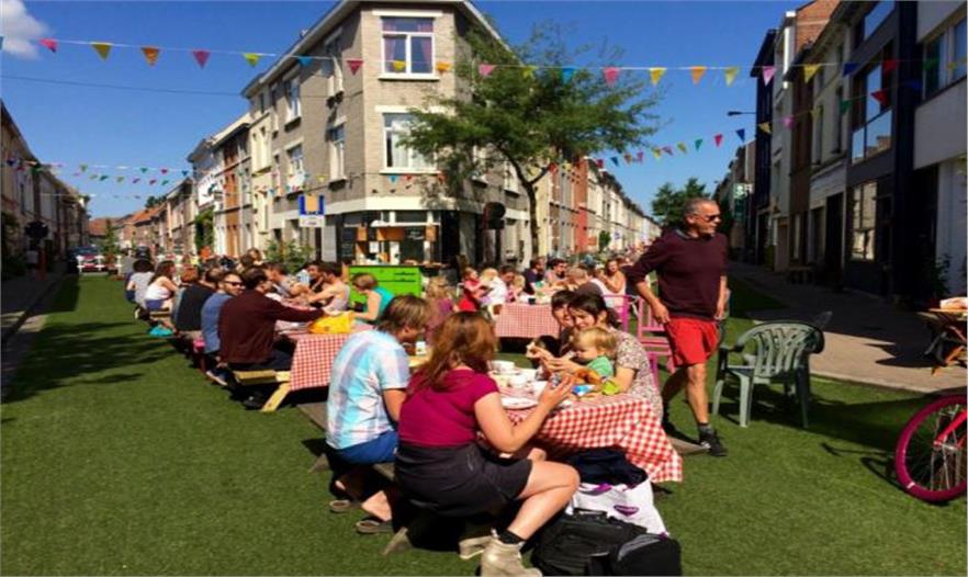 該方法起源于2013年,那時一大批的熱心人忙于根特關(guān)于未來流動性的政策。為了讓人們感覺到人使用街道與汽車使用街道之間的不同之處,他們想出了 Leefstraten理念,意為生活性街道。Leefstraten是一種體驗活動,能讓居民把街道改造成自己希冀的地方。通過移除汽車和尋找其他停車的地方,人們把這些空間改造成帶有滑梯、雞舍、法式滾球場、彈出式酒吧、人工草皮和野餐長凳的地方。