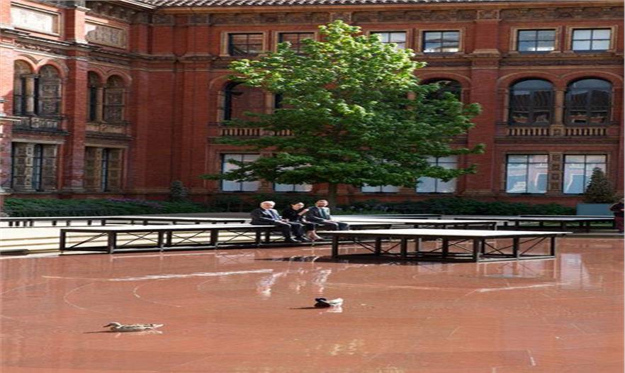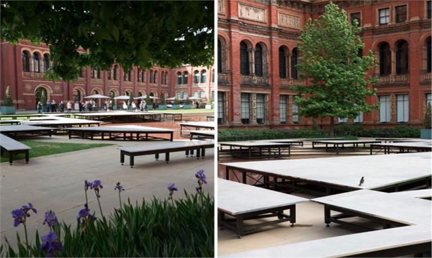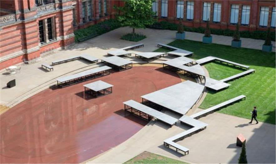 英國維多利亞與艾伯特博物館(縮寫 V&A )里面安置了一組特別的平臺,據(jù)設(shè)計師 Frida Escobedo 稱,它來源于古代墨西哥建在河流上的阿茲特克城(Aztec city)。