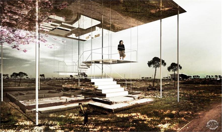 在這個(gè)基址,將產(chǎn)生三種類型的紀(jì)念物——用空氣、土地、水的建筑體驗(yàn)。每個(gè)設(shè)計(jì)使用和展示了房屋遺址殘存處,留下來(lái)自災(zāi)害的喚醒,喚起地區(qū)建筑物,ME的游客在災(zāi)難前去憶起沉思。