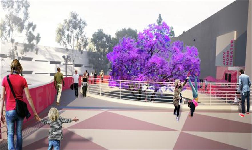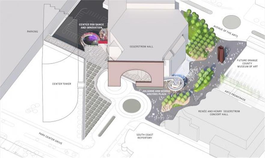 Michael Maltzan Architecture被委任重新設(shè)計加利福尼亞加州橙縣的西格斯托姆藝術(shù)中心的戶外區(qū)域,建造Julianne 和George Argyros廣場,希望將其轉(zhuǎn)變?yōu)橐粋€更動態(tài)的城市廣場。新廣場的設(shè)計旨在打造多功能戶外活動區(qū),建成后將作為人們碰面約會的社交地點。