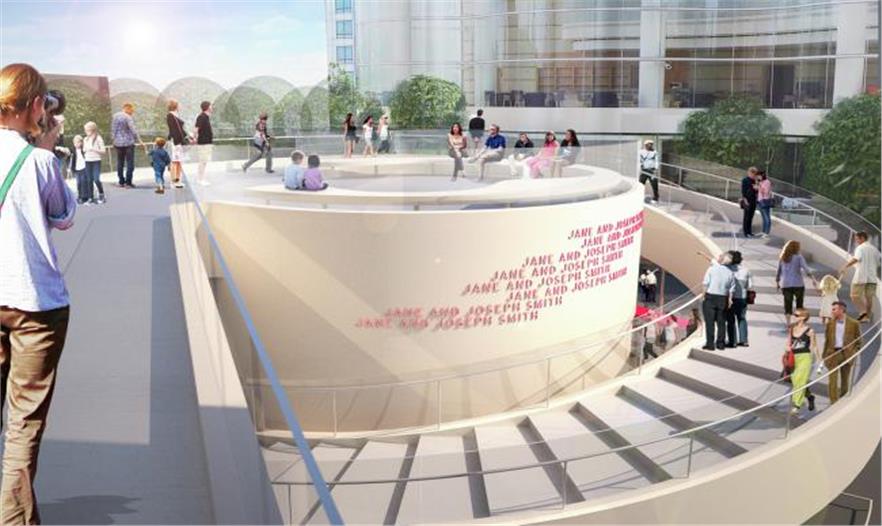為了同中心區(qū)域密切聯(lián)系,一個圓形樓梯連接了廣場和西格斯托姆禮堂,頂部是一個觀賞露臺和露天休息座椅。
