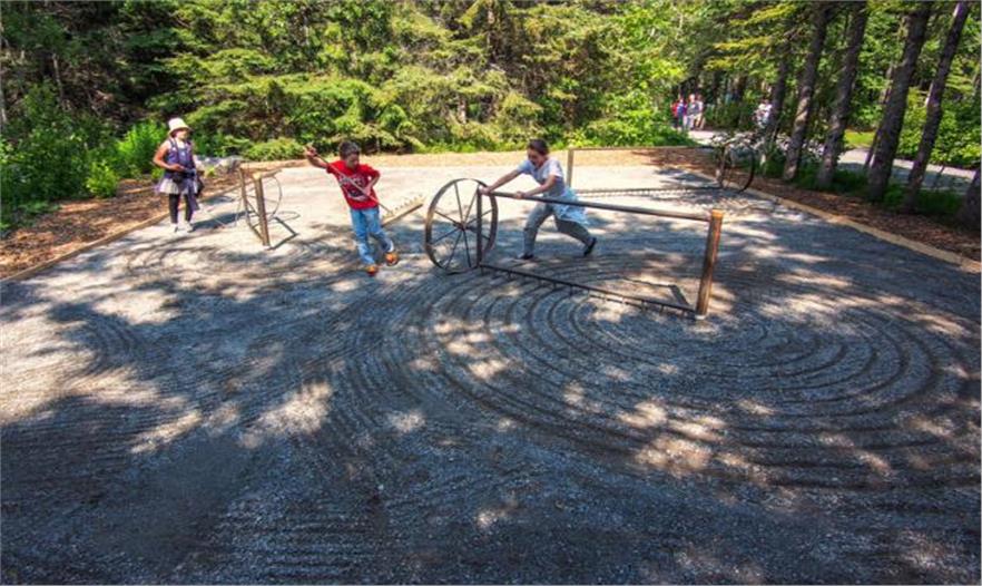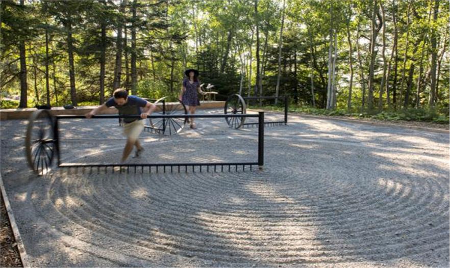 AROUND ABOUT是一個受日本禪意花園啟發(fā)設計的枯山水景觀裝置。一片碎石里劃出一系列大型的環(huán)形路線,而游客也會積極參與到花園的設計和重置中。