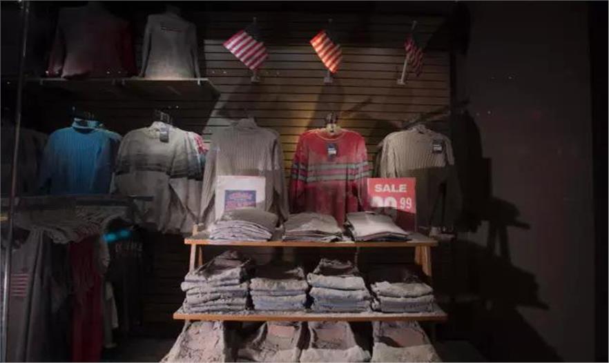 室內(nèi)的實景: ▼在世貿(mào)中心大廈倒塌時遭遇嚴(yán)重?fù)p毀的救援消防車