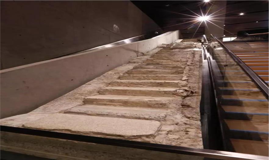 ▼在美國紐約拍攝的“9·11”國家紀(jì)念博物館內(nèi)保留的防水墻基