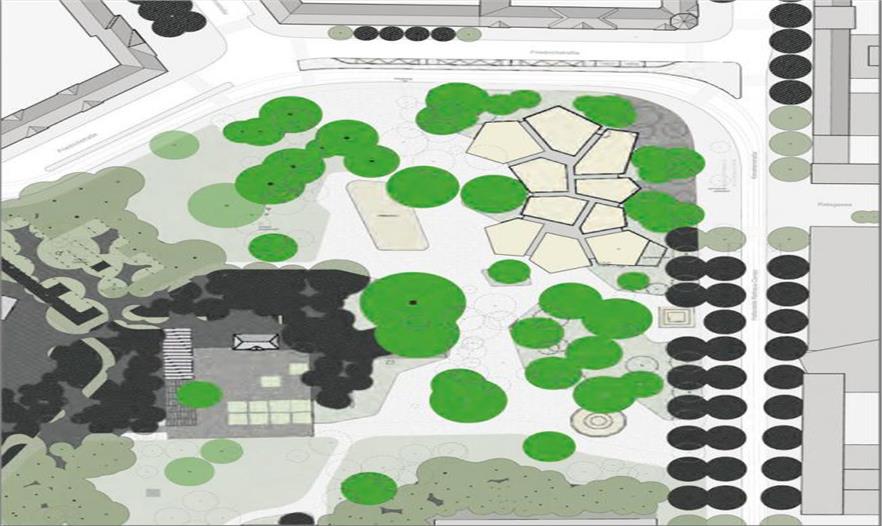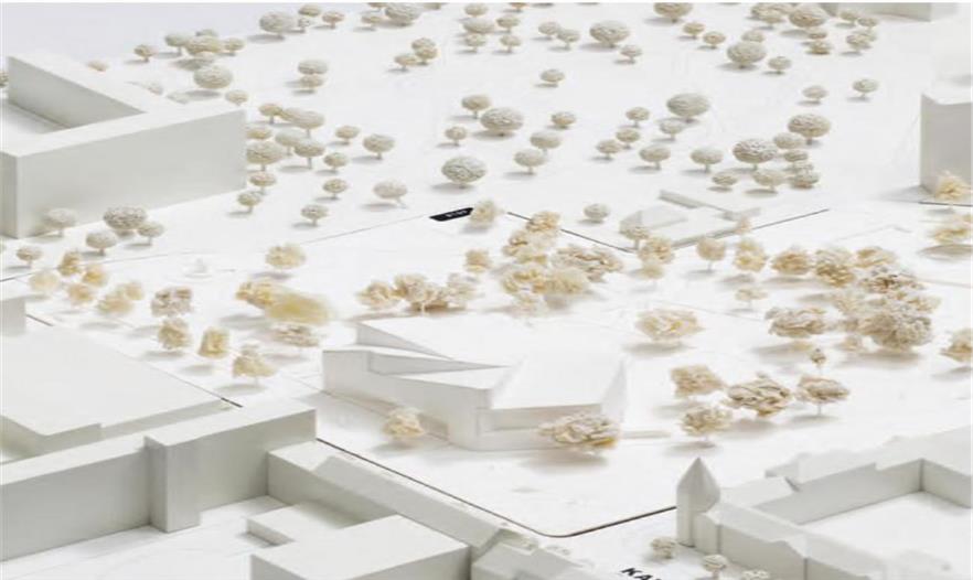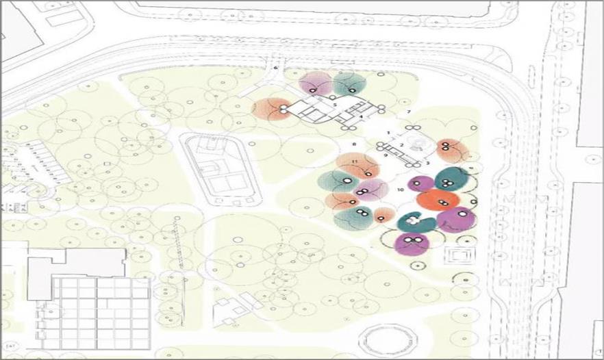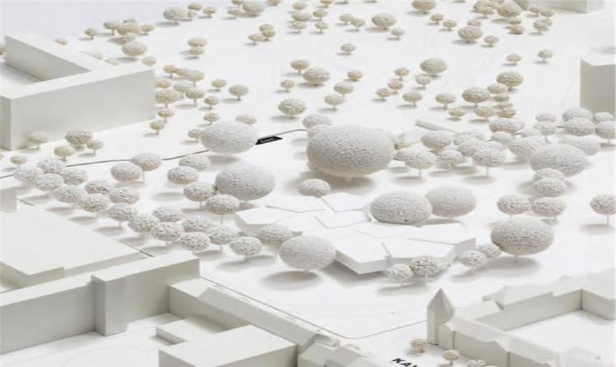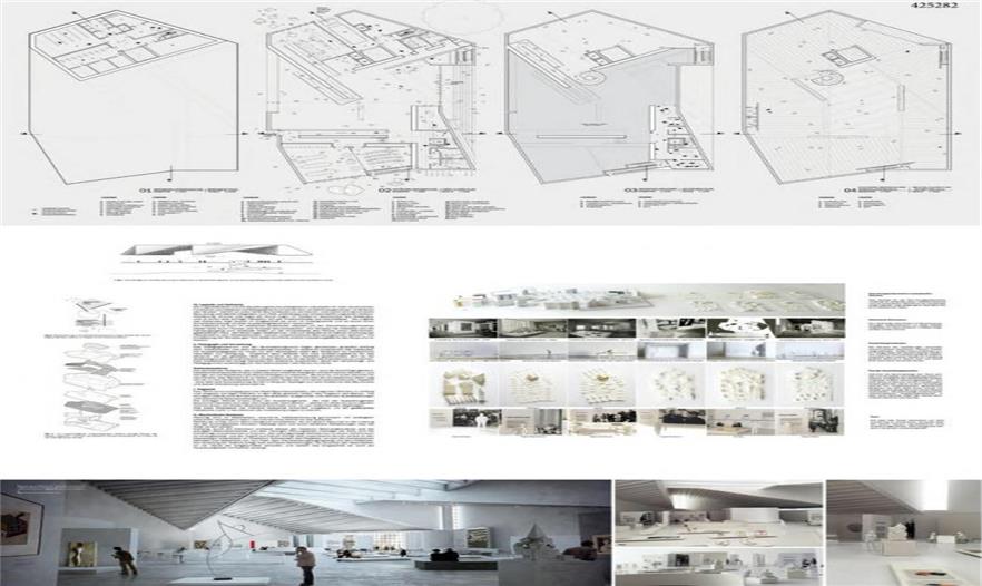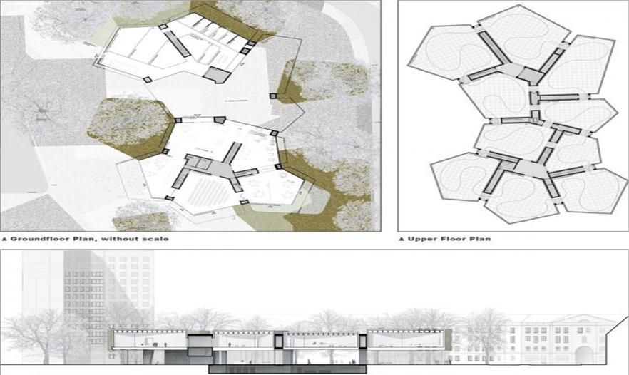 本次競(jìng)賽中的前三名都不約而同的選擇底層架空的方式,來(lái)解決任務(wù)書(shū)中提到博物館與城市公園的關(guān)系問(wèn)題。本設(shè)計(jì)以變異的五邊形為母題作為主要的博物館展廳,每個(gè)展廳之間的空隙作為交通空間和服務(wù)空間,由于多面體的豐富性,所以其無(wú)論是在公園內(nèi)還是街道上,都堪稱一道生動(dòng)的風(fēng)景線。