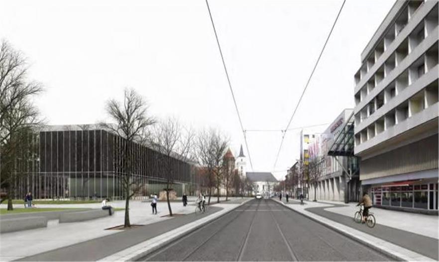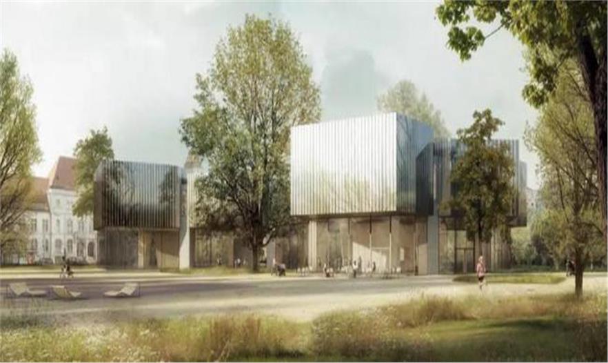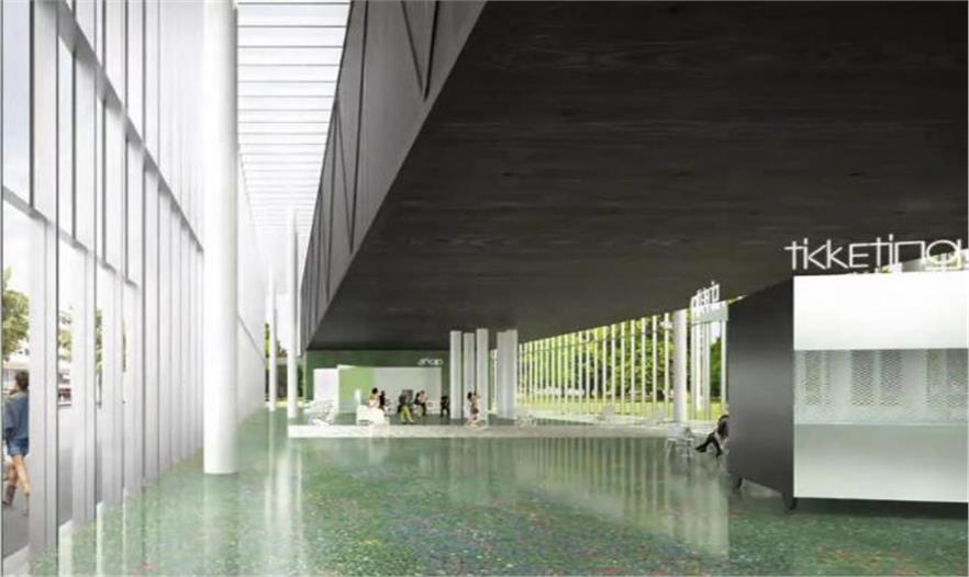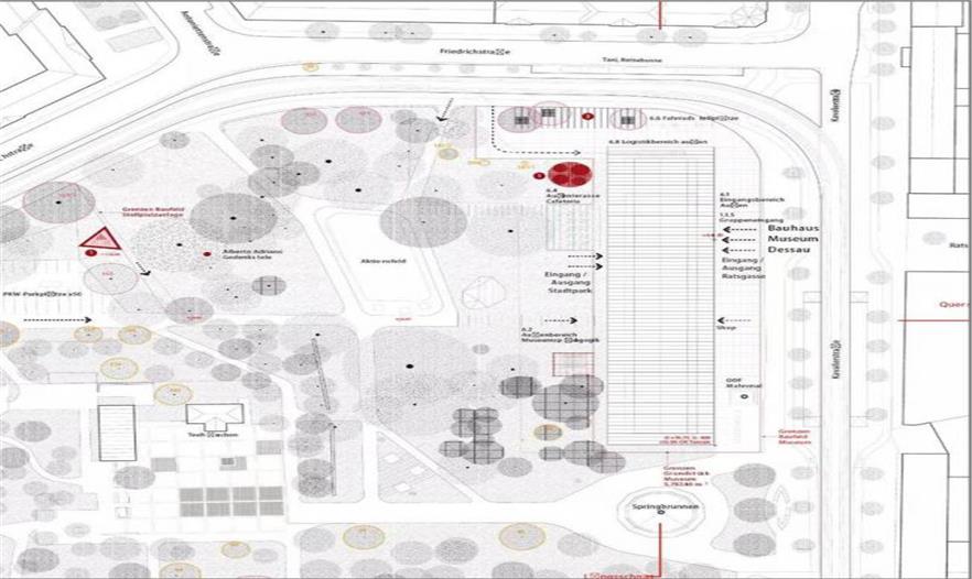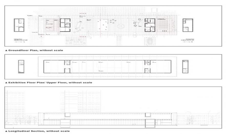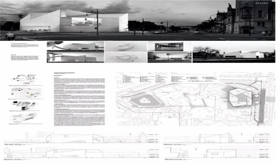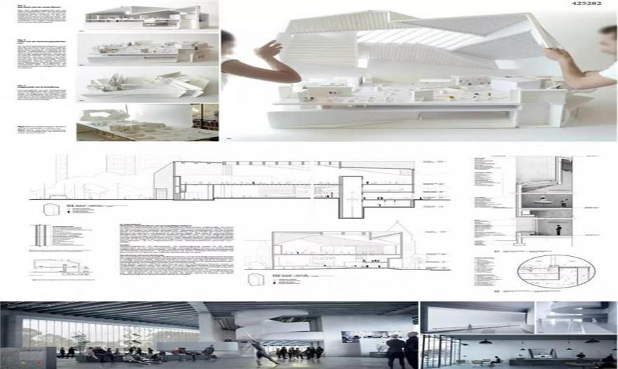 相較上一個(gè)第一名,該提案完全忠實(shí)于包豪斯的設(shè)計(jì)風(fēng)格,整個(gè)博物館就是一個(gè)漂浮于場(chǎng)地之上的黑色盒子,并被鋼制構(gòu)架所包裹,設(shè)計(jì)師在使用建筑材料的顏色上都是沿用了包豪斯風(fēng)格中常用的黑、紅等顏色。評(píng)委認(rèn)為這個(gè)設(shè)計(jì)中蘊(yùn)含著一種理性的精神,并通過(guò)底層架空的方式回應(yīng)與城市的關(guān)系,不失為一個(gè)穩(wěn)妥的設(shè)計(jì)。