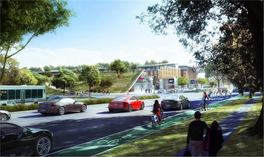 ↑綠色屋頂穿越現(xiàn)有的街道